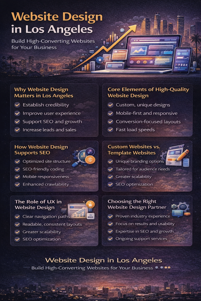 A professionally designed website communicates trust, supports marketing efforts, and creates a seamless experience for users across all devices. Los Angeles businesses need websites that are fast, user-friendly, and optimized for conversions to stay competitive in today’s digital landscape.